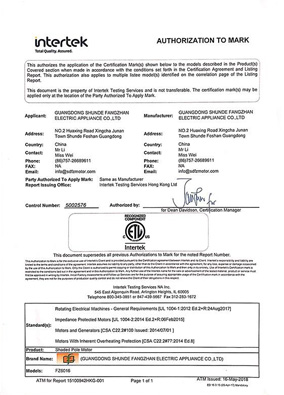 中國3C認證證書(串激電機)
